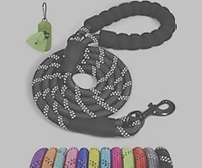Durable 6FT dog leash with padded handle and reflective threads, ideal for medium to large dogs.