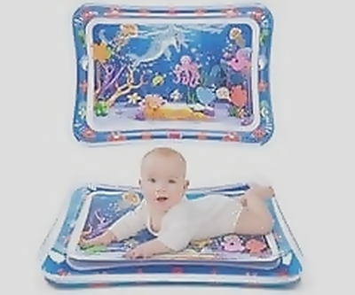 Inflatable tummy time water play mat for babies aged 3 to 12 months, promoting sensory development and motor skills.