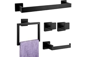 Upgrade your bathroom with this 5-piece matte black bathroom hardware accessories set, crafted from SUS304 stainless steel for durability and resistance to rust and corrosion. This set includes a towel bar, towel rack, and additional accessories that combine functionality with modern aesthetics. Perfect for adding a sleek, contemporary touch to your bathroom decor. Installation is easy with all necessary hardware included.