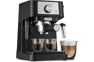 The De'Longhi Stilosa Manual Espresso Machine is designed for coffee lovers who appreciate the art of espresso making. With a 15 bar pump pressure, it ensures optimal extraction for rich and flavorful espresso. The integrated milk frother steam wand allows you to create creamy lattes and frothy cappuccinos with ease. Its sleek black design fits perfectly in any kitchen, making it a stylish addition to your countertop. Ideal for both beginners and experienced baristas, the Stilosa is a versatile machine that delivers cafe-quality drinks at home.