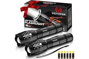 The Victoper LED Flashlight 2 Pack offers an impressive brightness of 3500 lumens, making it ideal for tactical use, outdoor activities, or emergency situations. Each flashlight features 5 different lighting modes, allowing you to customize the brightness according to your needs. The zoomable design lets you focus the beam for long-distance visibility or widen it for broader illumination. Built to withstand harsh conditions, these flashlights are waterproof, ensuring reliable performance in rainy weather. Lightweight and portable, they are perfect for camping, hiking, or everyday carry.