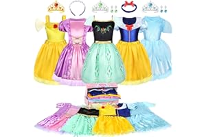 The LIMIROLER Princess Dress Up Clothes set is designed for little girls who love to indulge in role play and imaginative adventures. This costume gift set includes a beautifully crafted princess dress along with accessories that enhance the dress-up experience. Made from high-quality materials, the dress is comfortable and features vibrant colors and exquisite details that will make any little girl feel like a true princess. This dress-up set is perfect for birthday gifts, dress-up parties, or any occasion where your child wants to unleash her creativity and imagination.