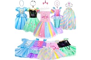 The LIMIROLER Princess Dress Up Toys set is a delightful and imaginative costume kit designed for little girls aged 3 to 8 years. This 9-piece gift set includes a stunning rainbow mermaid cape, along with various accessories that spark creativity and encourage pretend play. Perfect for birthday parties, dress-up events, or everyday fun, this dress-up kit allows young girls to embody their favorite princess characters and explore their imaginative worlds.