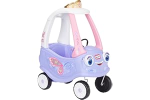The Little Tikes Fairy Cozy Coupe is an adorable and whimsical ride-on toy designed for toddlers. Featuring a charming fairy design, this large version of the classic Cozy Coupe encourages imaginative play and active movement. With a working door, a removable floorboard for younger children, and a fun steering wheel with a horn, this coupe provides endless hours of outdoor fun. It also has durable construction for long-lasting use and can support children up to 50 pounds.