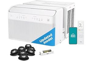 The Midea MAW08V1QWT U-Shaped AC Window Air Conditioner is designed for quiet operation and energy efficiency, making it ideal for residential spaces. Featuring a U-shaped design, this air conditioner allows for a more unobstructed window view and promotes better airflow. It offers 8,000 BTU of cooling power, effectively cooling rooms up to 350 square feet. The unit is equipped with Wi-Fi connectivity, enabling remote control via a smartphone app, and features a programmable timer, energy saver mode, and multiple cooling speeds. Its quiet operation ensures minimal disruption, with noise levels as low as 42 decibels. The Midea MAW08V1QWT is a reliable choice for those looking to maintain comfort without sacrificing energy efficiency.