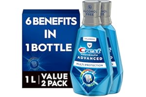Crest Pro-Health Advanced Mouthwash is an alcohol-free mouthwash designed to provide multi-protection for your dental health. Its unique formula helps fight plaque, gingivitis, and bad breath, while promoting a healthier mouth. The fresh mint flavor leaves your breath feeling clean and invigorated. This pack contains two 1-liter bottles (33.8 fl oz each), making it a convenient choice for long-lasting freshness for you and your family.