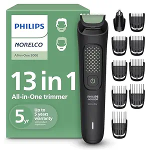 The Philips Norelco All-in-One 3000 Series 13 in 1 Trimmer is a versatile grooming tool designed for men, featuring a beard styler and hair clipper. This trimmer includes 9 length settings for customizable grooming and self-sharpening skin-friendly blades for a smooth and comfortable experience. Its all-in-one functionality allows you to achieve a variety of styles, making it perfect for maintaining facial hair and haircuts with ease.