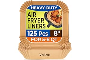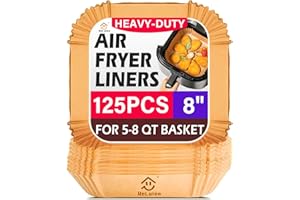 These Air Fryer Paper Liners are designed to simplify the cleanup process after cooking. With 125 pieces included, these disposable liners are non-stick and oil-proof, making them perfect for use in air fryers measuring 5-8 quarts. The 8-inch square design fits most air fryer baskets, helping to prevent food from sticking while also ensuring that your appliance stays clean. Enjoy hassle-free cooking with these convenient and practical liners.