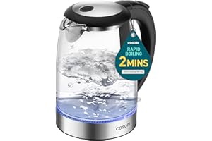 The Cosori Electric Kettle is designed for tea and coffee lovers seeking a premium boiling experience. Featuring a stainless steel inner lid and no plastic filter, this kettle ensures that your water is pure and untainted by harmful chemicals. The rapid boil technology heats water quickly, making it ideal for both tea and coffee brewing. Its elegant design and safety features, including auto shut-off and boil-dry protection, make it a perfect addition to any kitchen. With a large capacity and easy-to-use interface, this kettle is both functional and stylish.