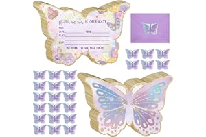 Hotop 24 Sets Butterfly Birthday Invitations come with matching envelopes and stickers, designed specifically for girls' birthday parties. Each invitation features a charming butterfly theme, perfect for creating a whimsical and delightful atmosphere for your child's special day. The set includes 24 high-quality invitations that allow you to invite friends and family in style. The envelopes are easy to seal, and the included stickers add a nice touch to personalize each invitation.