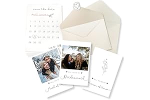 The STOFINITY 11 Bridesmaid Proposal Card Set includes 8 'Will You Be My Bridesmaid' cards, 2 'Will You Be My Maid Of Honor' cards, and 1 'Matron Of Honor' card. These beautifully designed cards are perfect for asking your closest friends to stand by your side on your special day. Each card features elegant designs and heartfelt prompts, making your proposal memorable and meaningful.