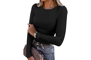 The ANRABESS Women Long Sleeve Shirts are designed for comfort and style, featuring a rib knit fabric that provides a slim fit while ensuring breathability. These basic tees are perfect for layering or wearing on their own, making them versatile for various fall outfits. The long sleeves offer added warmth, making it a great choice for casual outings or as underscrubs. Ideal for everyday wear, this top pairs well with jeans, skirts, or shorts, making it a staple in any wardrobe.