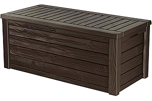 The Keter Outdoor Storage Deck Box is a versatile 150-gallon resin patio bin that doubles as a stylish bench. Designed with a wood grain finish in a rich brown color, this storage solution provides ample space for cushions, gardening tools, pool toys, and more. Built for durability and weather resistance, it features a lockable lid for added security and easy access to your belongings. Perfect for enhancing your outdoor space while keeping it organized.