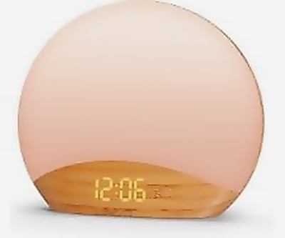 Wood Grain Sunrise Alarm Clock with 26 Sleep Sounds and Dimmable Display.