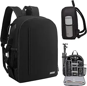 The CADeN Camera Backpack Bag is designed for professional photographers seeking a reliable and spacious solution for transporting their DSLR, SLR, or mirrorless camera gear. With its waterproof construction, it offers excellent protection against the elements, making it suitable for outdoor photography. This backpack features customizable compartments to securely hold your camera body, lenses, and accessories, while also providing ample storage for personal items. Compatible with major brands like Sony, Canon, and Nikon, it\'s a versatile choice for any photographer.