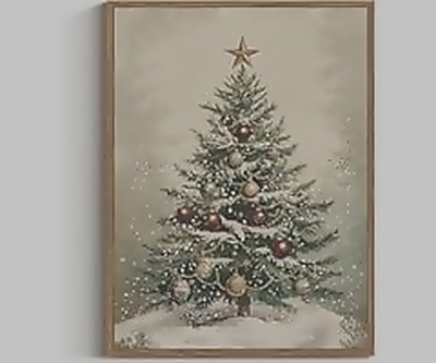 Vintage Christmas Tree Framed Canvas Wall Art for festive home decor.