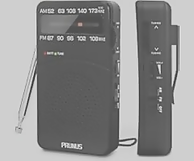 Compact AM/FM portable radio with excellent reception, tuning light, and back clip for easy carrying.