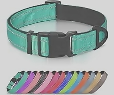 Joytale Reflective Dog Collar, Soft Neoprene Padded, Metal D-Ring, Nylon Pet Collar Adjustable for Large Dogs, Teal, L