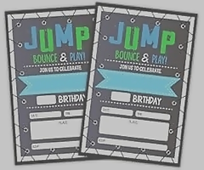 Fun trampoline-themed birthday party invitations for kids, suitable for boys and girls.