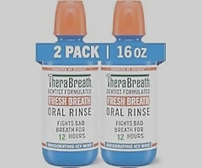 TheraBreath Fresh Breath Mouthwash, Icy Mint Flavor, Alcohol-Free, 16 Fl Oz (Pack of 2)
