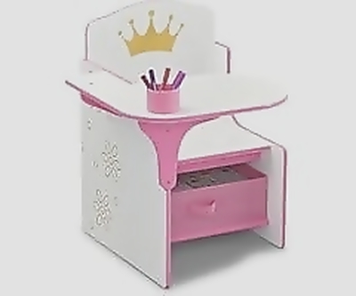 Charming princess-themed desk with storage bin for kids, perfect for arts, crafts, and homework.