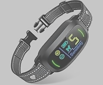 Rechargeable anti-barking collar for dogs with 5 adjustable sensitivity levels.