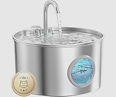 Stainless steel cat water fountain with 74oz capacity, quiet operation, and easy maintenance.