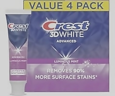 Crest 3D White Advanced Luminous Mint Toothpaste (Pack of 4) helps remove surface stains and whitens teeth for a brighter smile.