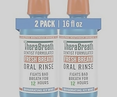 TheraBreath Fresh Breath Mouthwash, Icy Mint Flavor, Alcohol-Free, 16 Fl Oz (Pack of 2)
